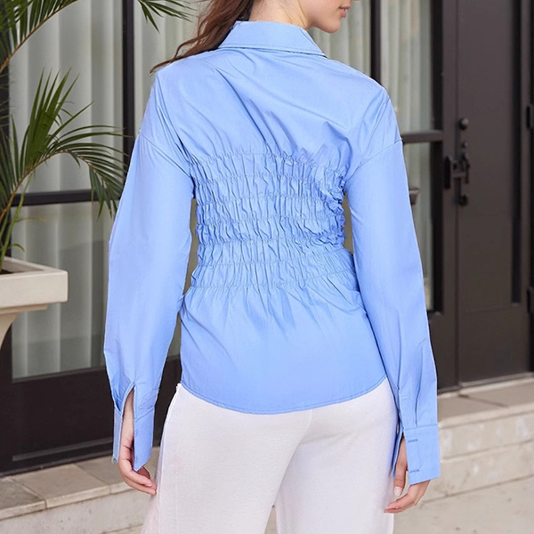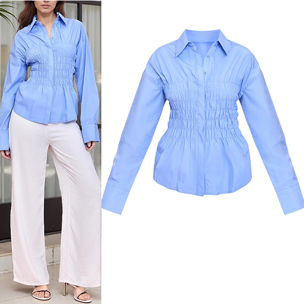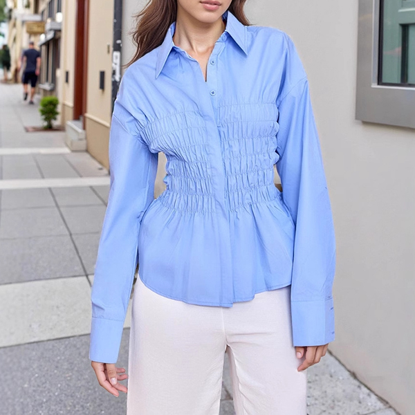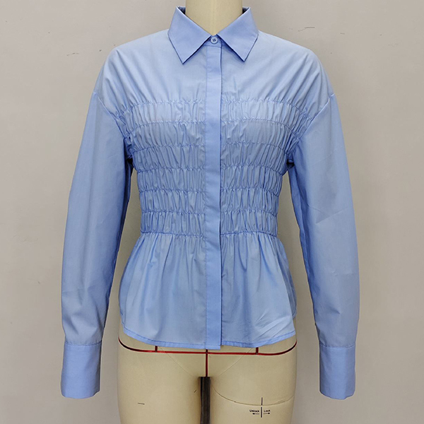 Smockblus för dam med ståkrage och långa ärmar – trendig design