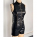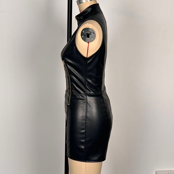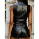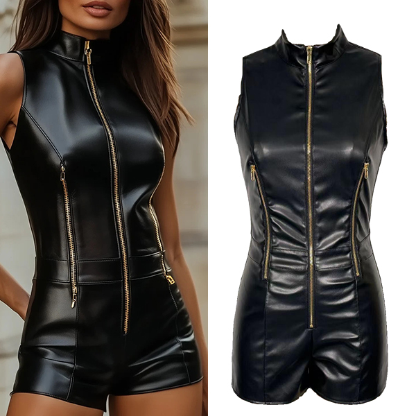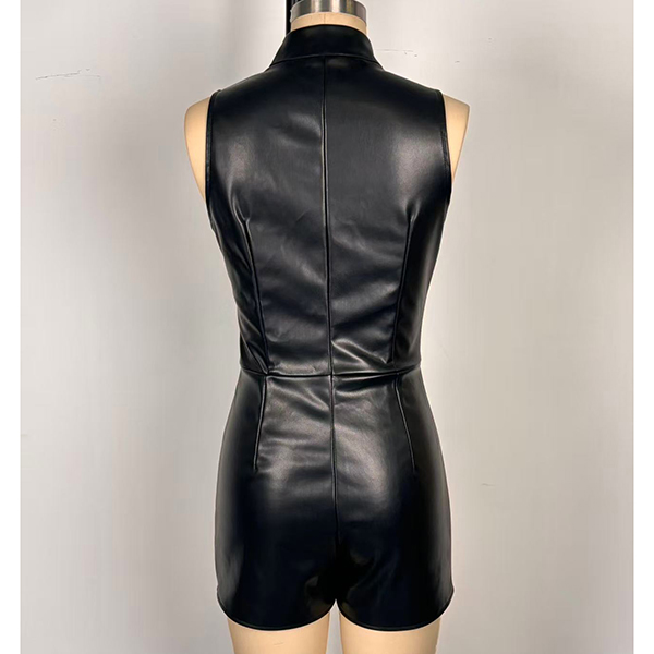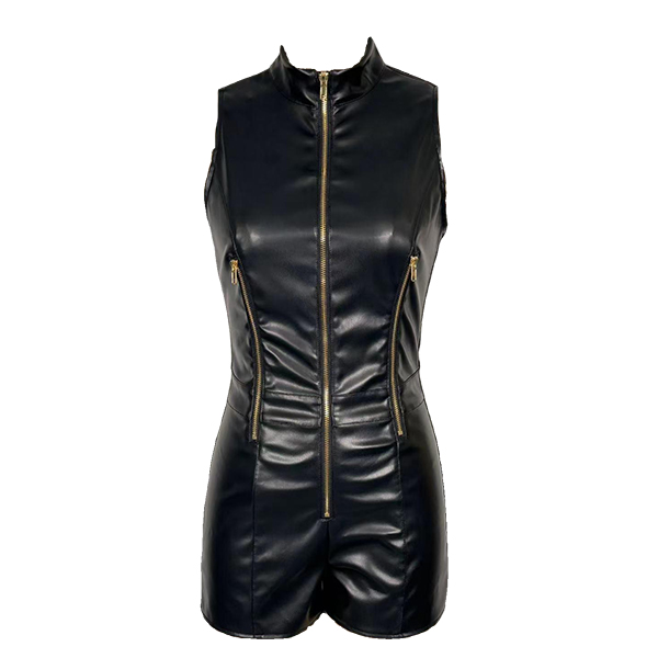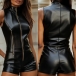 Ärmlös PU-jumpsuit i konstläder med ståkrage och framdragkedja