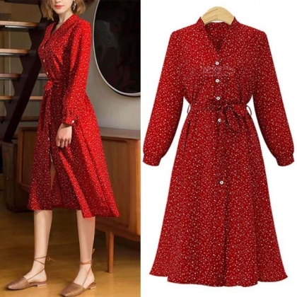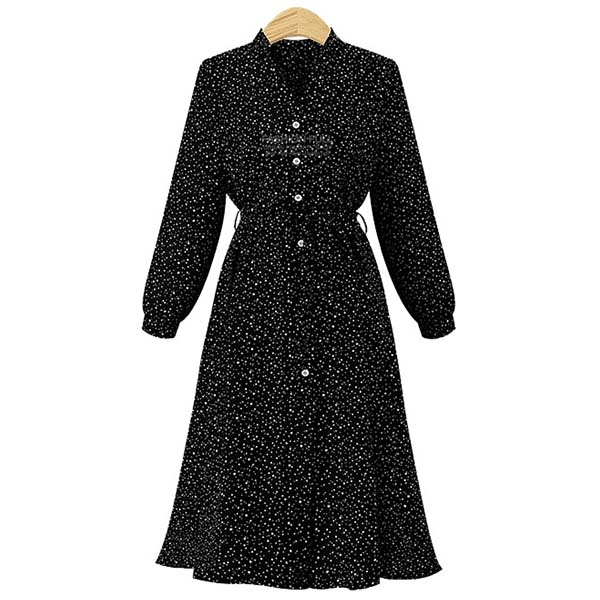 Choose a classic style for a real fashion win when you flaunt this long sleeve dot dress.