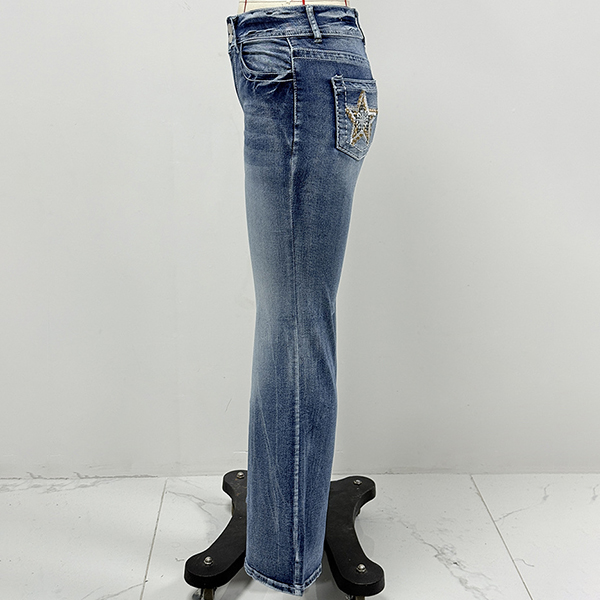 Dessa trendiga jeans har hög midja som framhäver din naturliga midja för en smickrande och bekväm passform. Stjärnbroderidetaljen på bakfickorna ger en lekfull och unik touch, vilket gör dessa jeans både iögonfallande och personliga. Vill du prova?