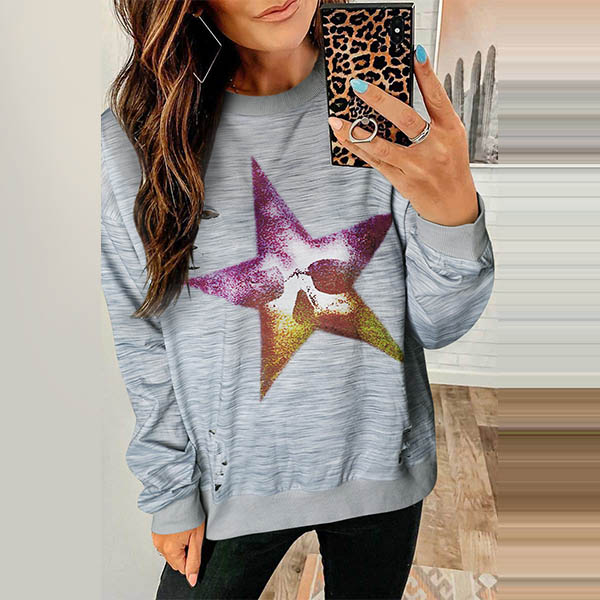 Fashion Star Printed Long Sleeve Round Neck Sweatshirt