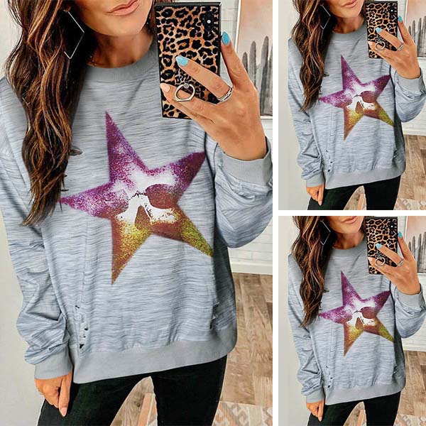 As for a casual,laid-back and stylish daily look,you can slip into this sweatshirt! The star printed pattern design will add some charm,while its soft and breathable fabric can give you a comfortable day. No matter matching with a shorts,skirt or jeans,you can look fashionable enough!