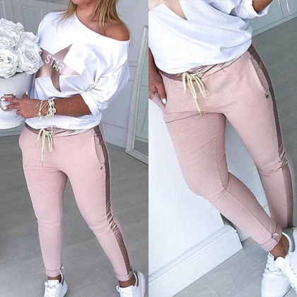 For your sports time and casual weekends,this two-piece set can be a good choice. Including a long sleeve round neck sweatshirt and a pants,its soft and breathable fabric can give you a comfortable day,while the star printed pattern design breaks the simple and dull design style. You can trust in this two-piece set to give you a casual,cozy yet stylish style.