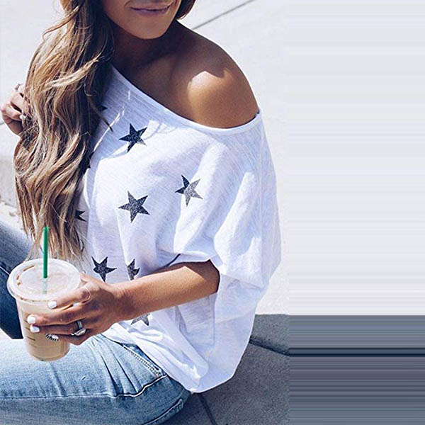 Designed with chic and fashionable star printed pattern,this t-shirt can offer you the comfy while it make you be a trendsetter. Meanwhile,the knotted hem design can easily enhance its charm. So why not matching with your favourite jeans to start your wonderful day?