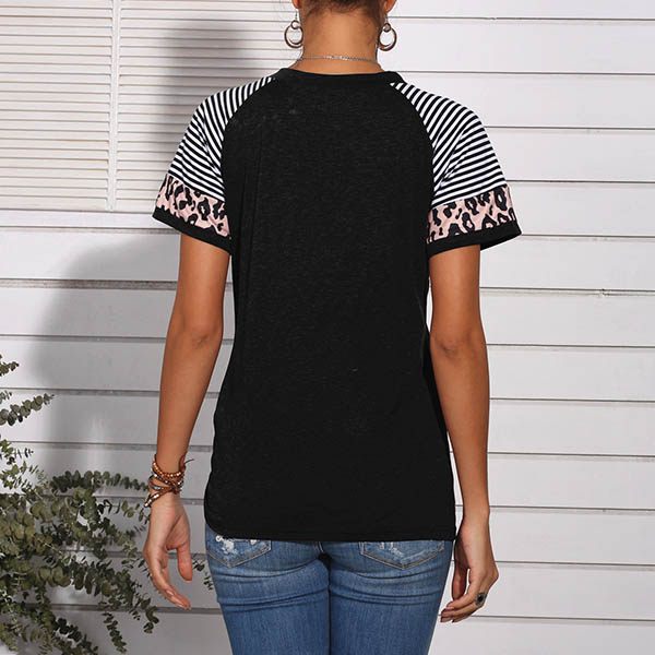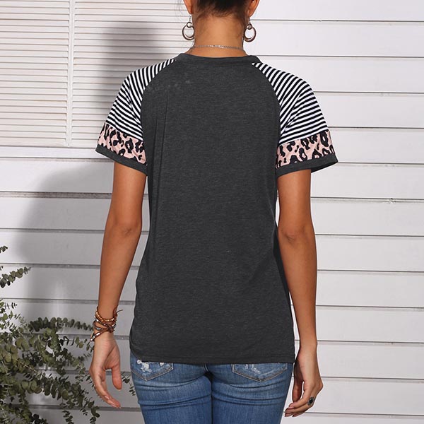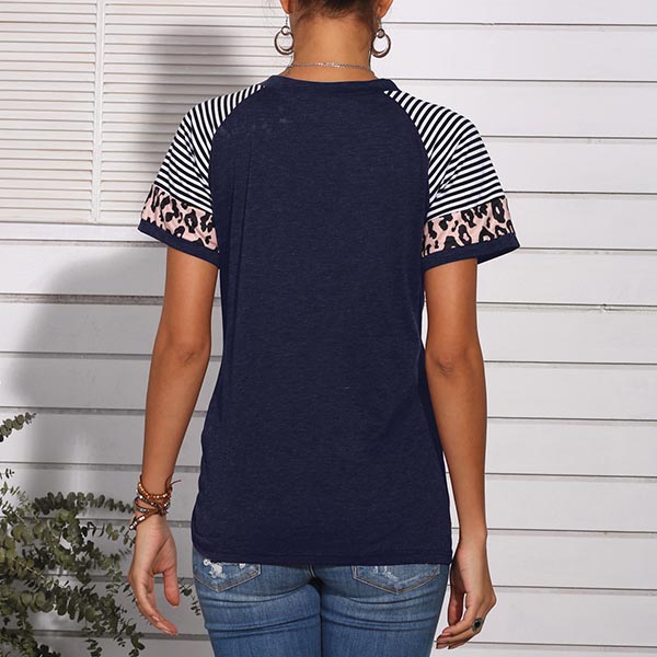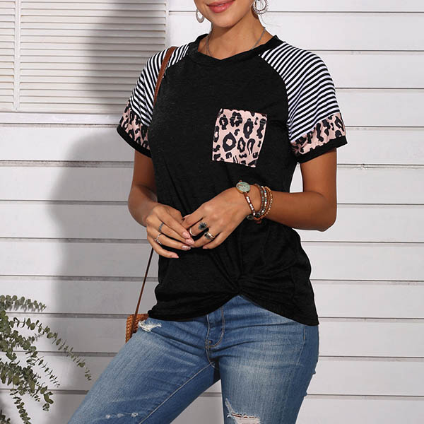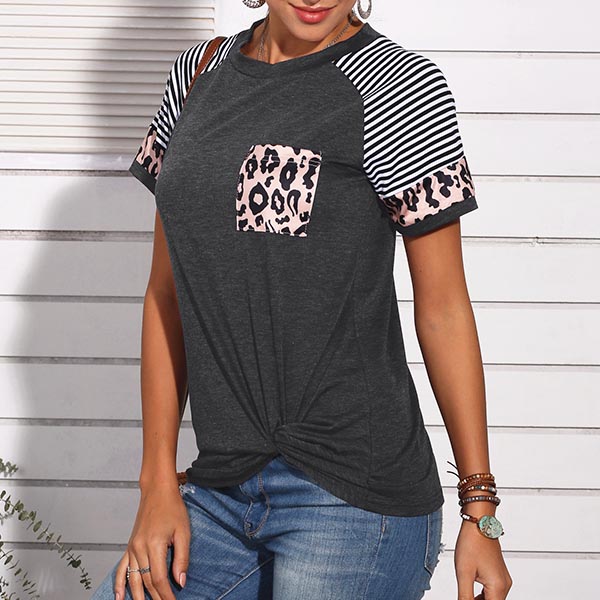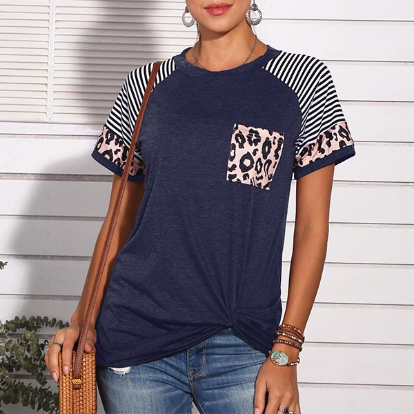 This cozy yet stylish t-shirt will become a coveted staple in these summer days. The stripe,leopard element and twisted hem design make this piece full of distinctive and stylish vibes. No matter matching with a shorts,skirt or jean,you can have a laid-back and fashionable daily look.