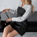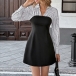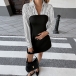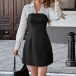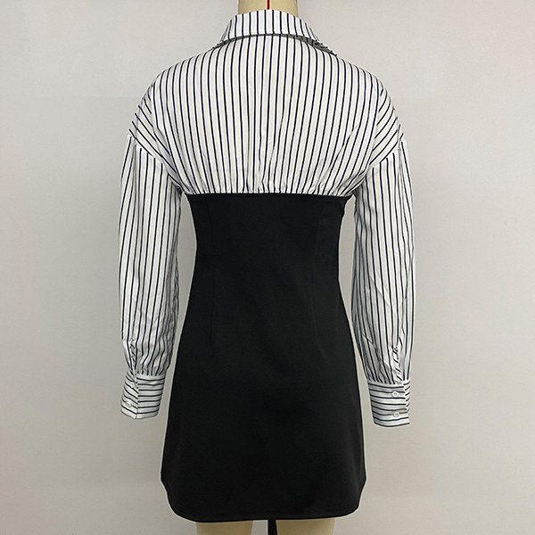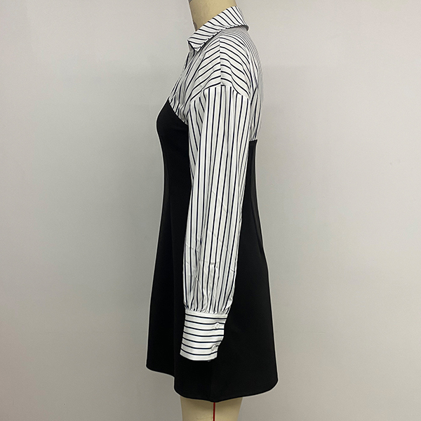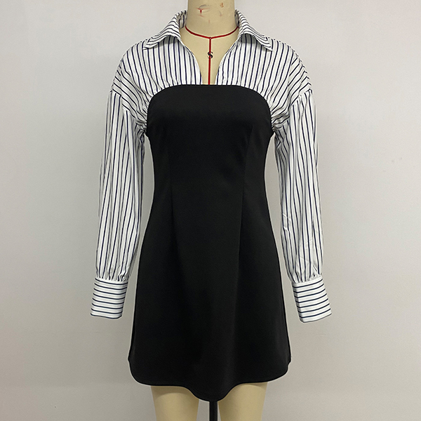 Randig damklänning med ståkrage, V-ringning och långa ärmar – tvådelad mockupmodell