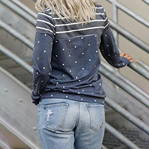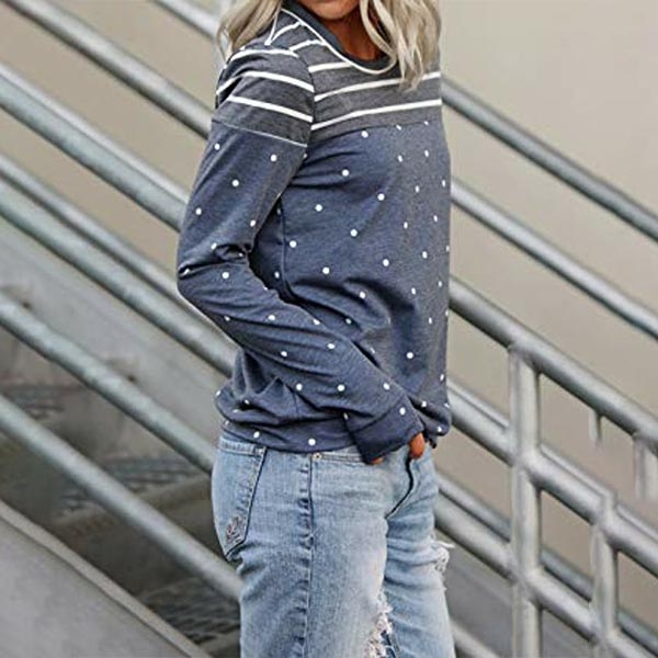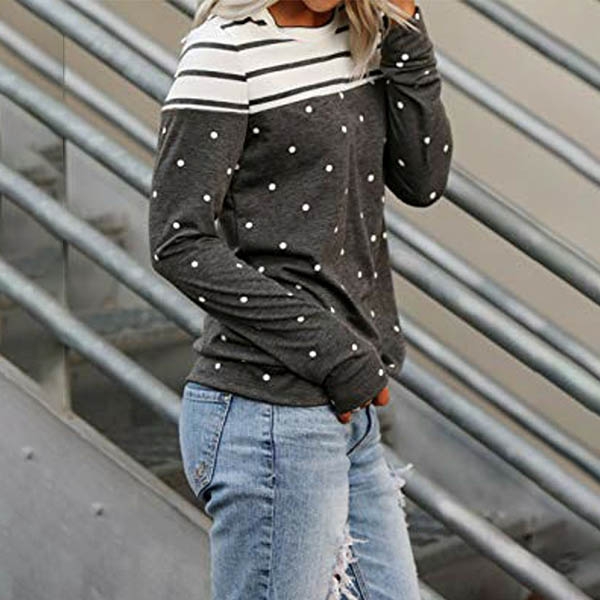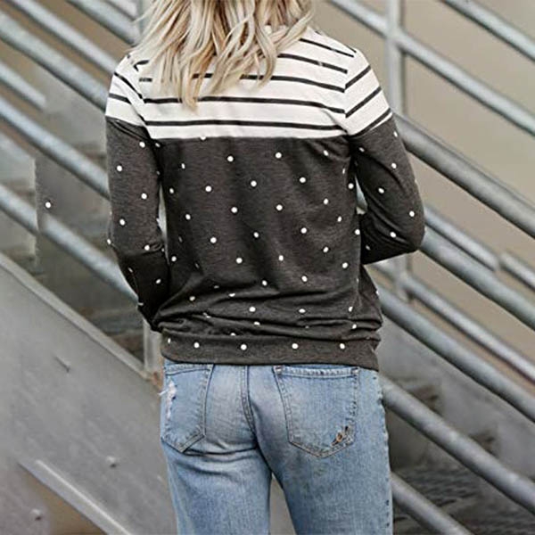 The striped spliced and dots printed details will make this piece look more attractive. Outfitted with