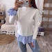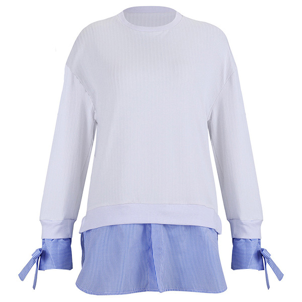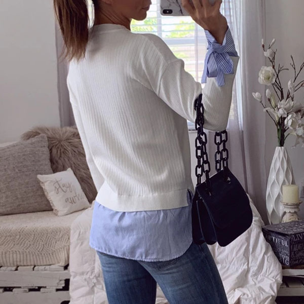 At your first sight,you may think it is a two-piece set,actually it is not. Striped spliced design at the cuff and hem part make this piece look so distinctive. When the days get cold,this chic and stylish knit top would easily strike your mind!