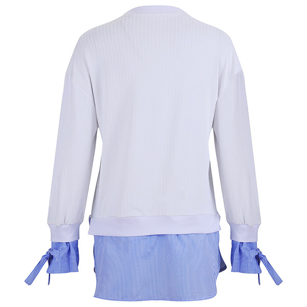 Fashion Striped Spliced Long Sleeve Round Neck Knit Top