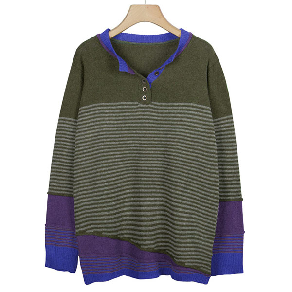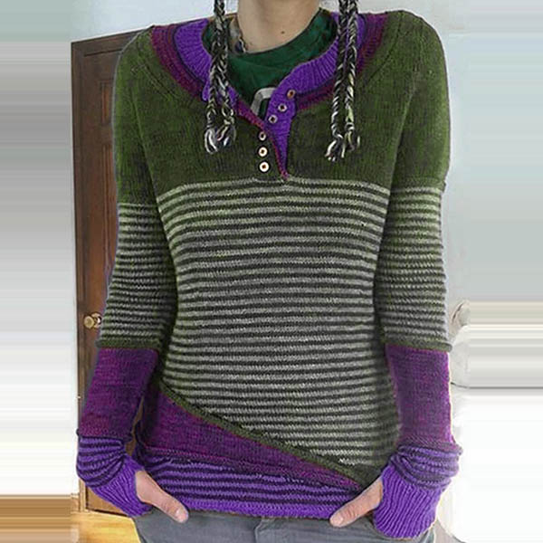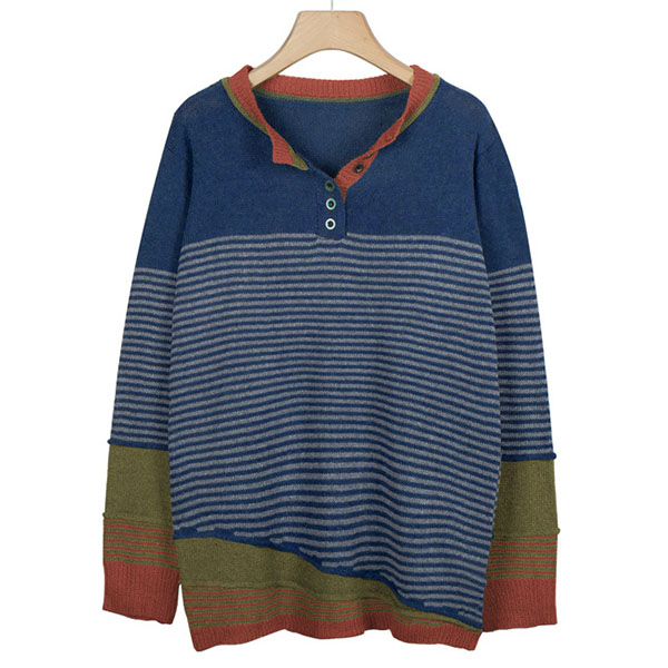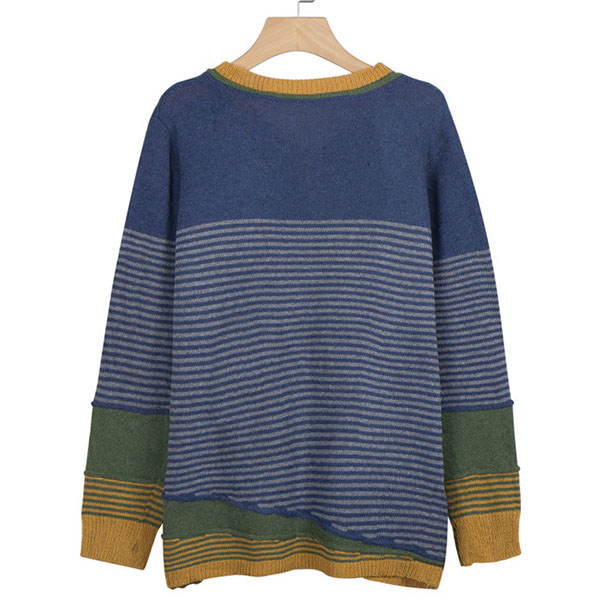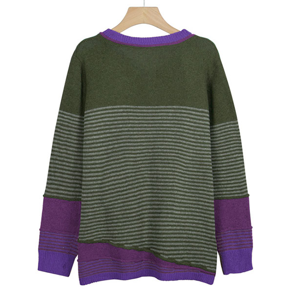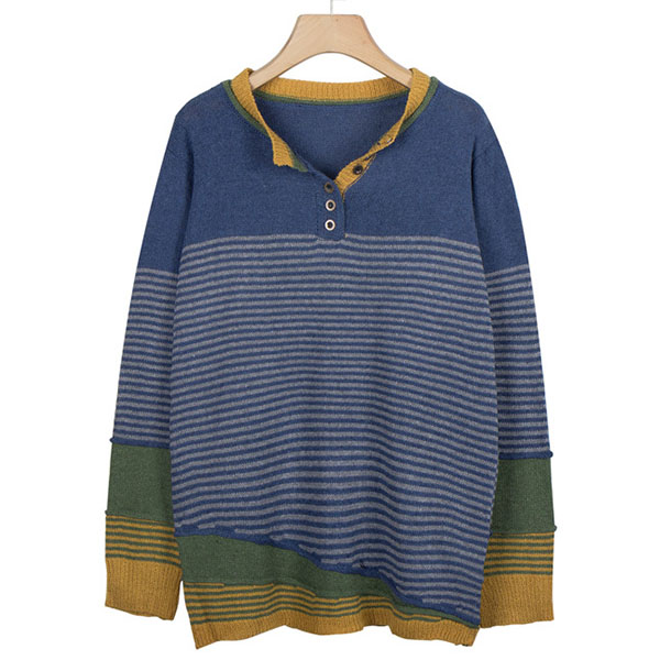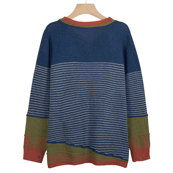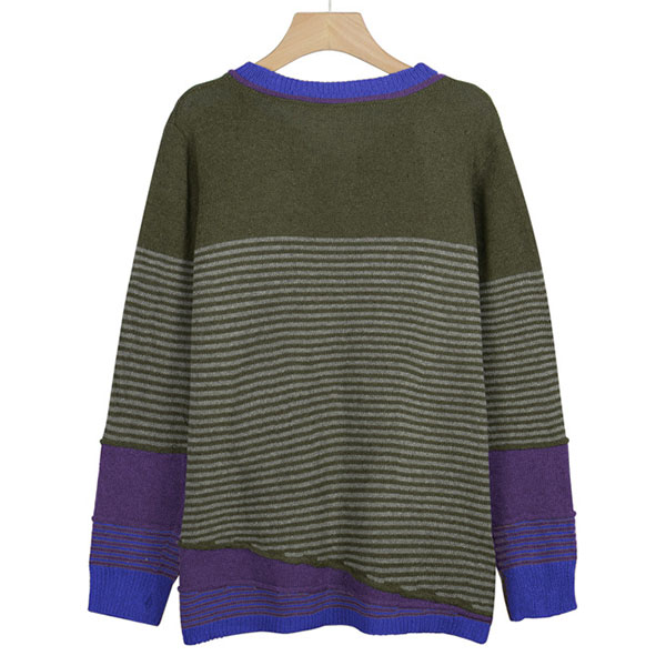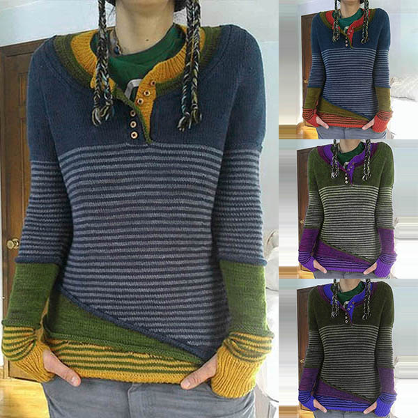 Not only can keep you warm,but also can maintain your style,that's why we suggest you this knit top! Contrast color style,chic yet stylish. The striped spliced design will make this piece look more attractive. When the days get a little cold,you can count on this piece to keep you warm and stylish.