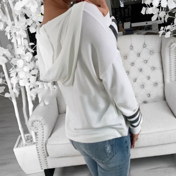 Fashion Striped Spliced Long Sleeve V-neck Hooded Sweatshirt