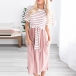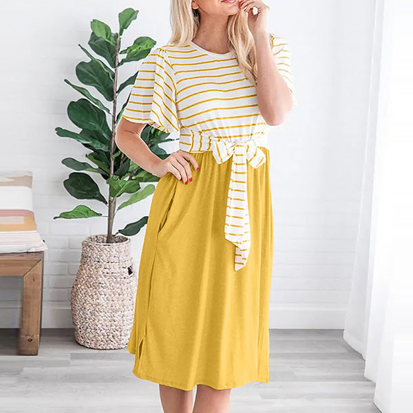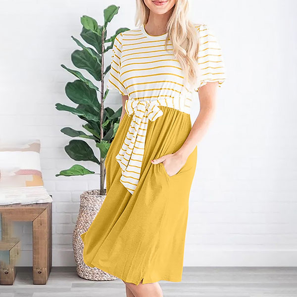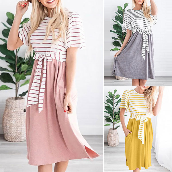 No matter for your busy workdays or casual weekends,this versatile dress can offer you a cozy yet stylish style. The striped spliced and lace-up design at the waist part make this piece full of charm. Just need to match with your favourite shoes,then you can be ready to go out!