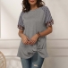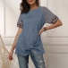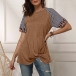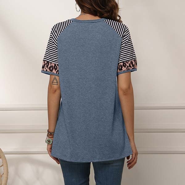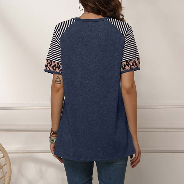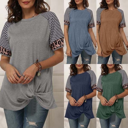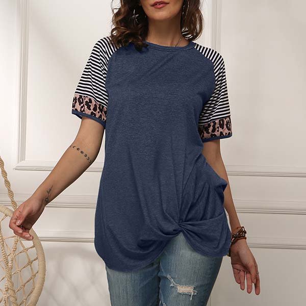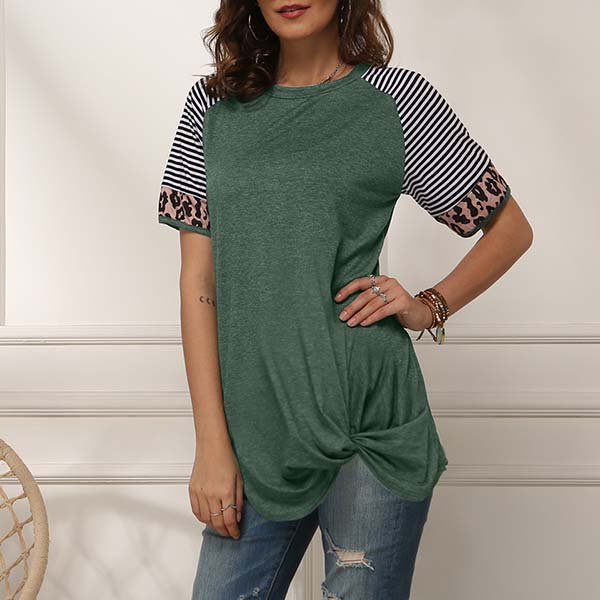 Fashion Striped Spliced Short Sleeve Twisted Hem T-shirt