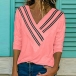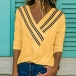 For a weekend look that is full of cozy and stylish vibes,we suggest you choosing this t-shirt! Its soft and breathable fabric can ensure you a comfortable day,while the v-neck and striped spliced design at the neckline part will enhance your charm. Thanks to the all-match design,it can hardly go wrong no matter what kind of bottoms you pair with!