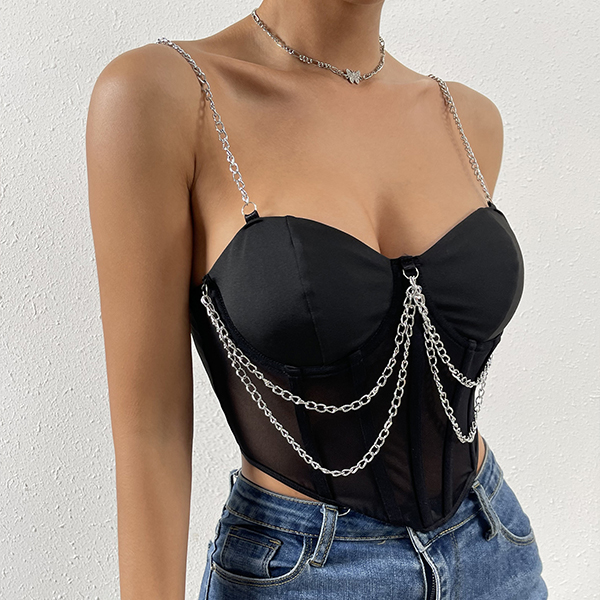 Mode Älskling Halsband Kedjekorsett Crop Skjorta