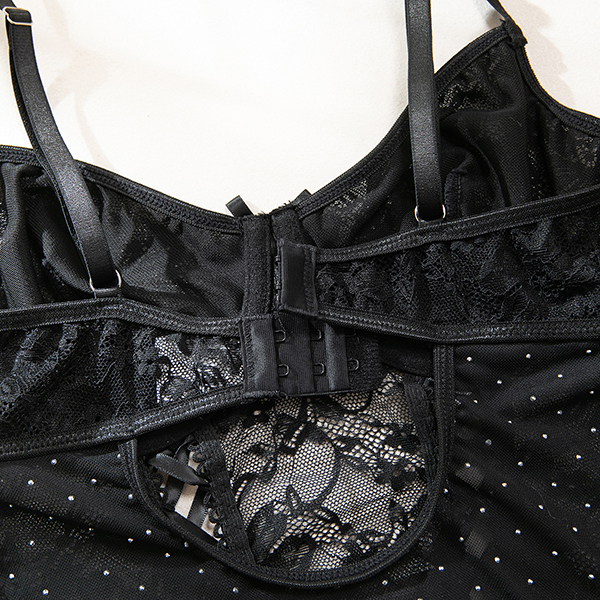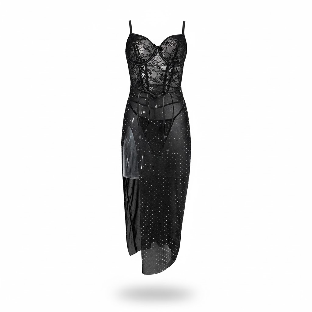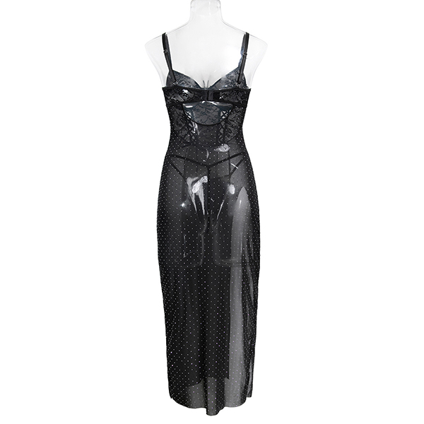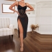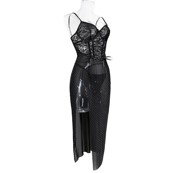 Fashion Sweetheart Neckline Lace-up Lace Spliced Rhinestone Side Slit Party Dress
