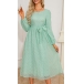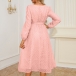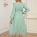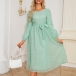 Schweizisk Mode-Prickig Fyrkantig Hals Långärmad Självknytande Midiklänning