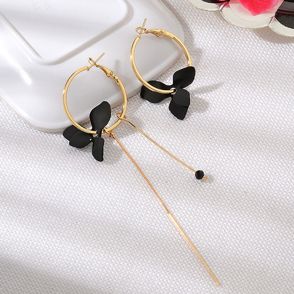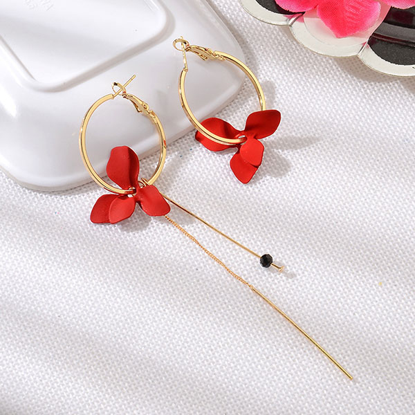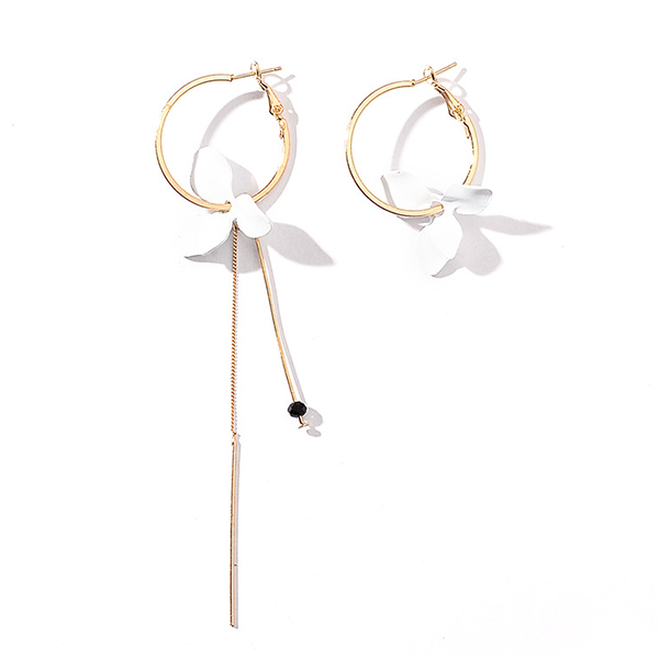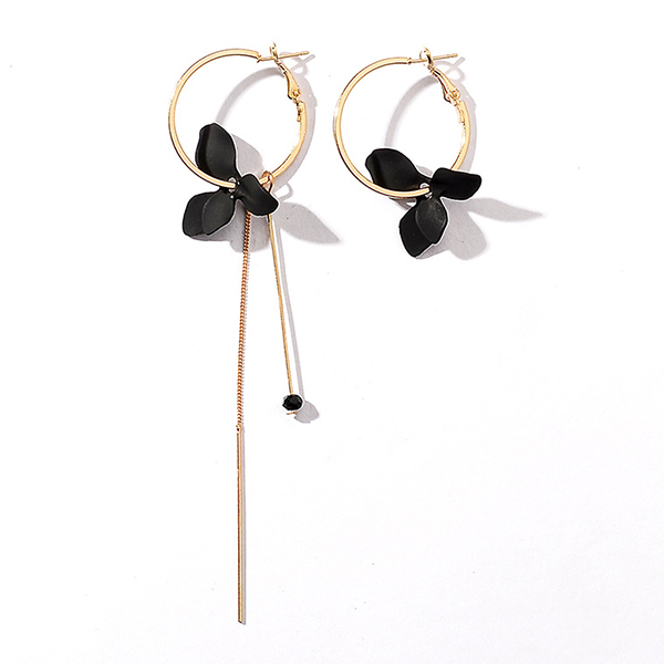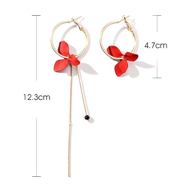 Avsluta din look med en mer charmig och vacker touch genom att bära detta par örhängen. Den asymmetriska designen ger det ett elegant och unikt utseende. Örhängena är dekorerade med tofsar och kronbladshängen, vilket bidrar till dess charm.