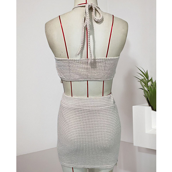 Modernt tvådelat set med fransar, inkluderar halterneck-topp och minikjol