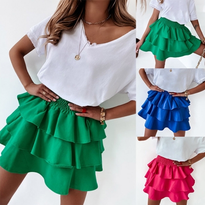 Fashion Tiered Elastic Waist Mini Skirt