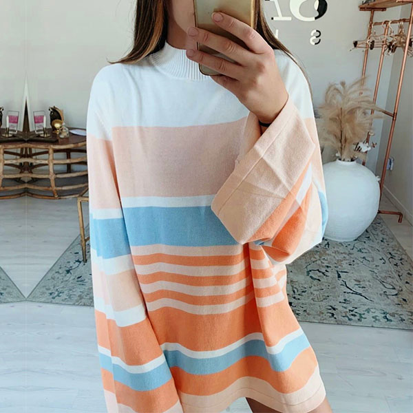 Give your wardrobe an update by adding this wonderful top! The stripe element design makes it look so stylish and popular,while the trumpet sleeve and mock neck design create its uniqueness. You can trust in this piece to give you a cozy yet stylish style.