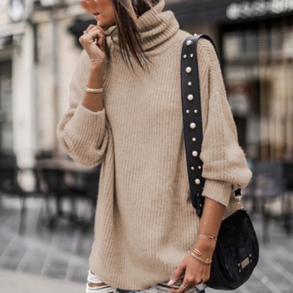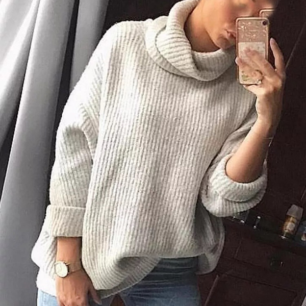 Polotröja för dam – långärmad, stickad modell med oversized passform