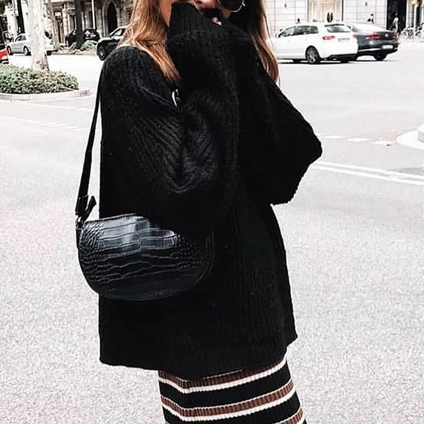 Håll dig mysig och elegant i denna lösa tröja. Den har en avslappnad passform och en klassisk polokrage, perfekt för lager-på-lager under de kallare månaderna. Finns i flera färger.