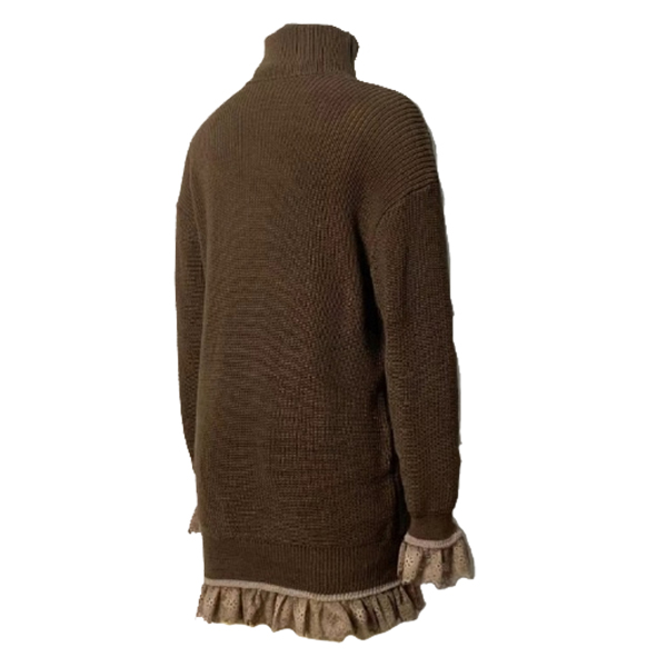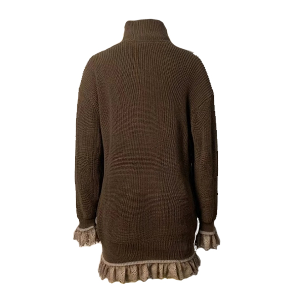 Dam polotröja, trendig långärmad topp med volang och skarvad fåll