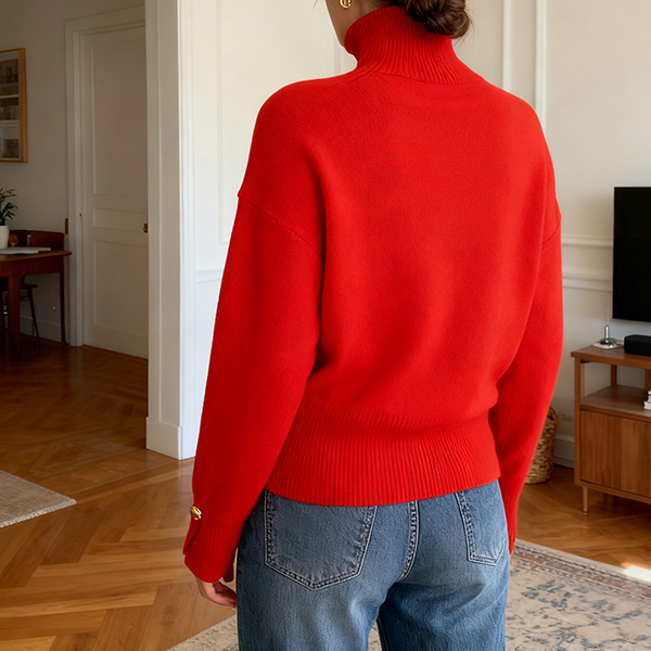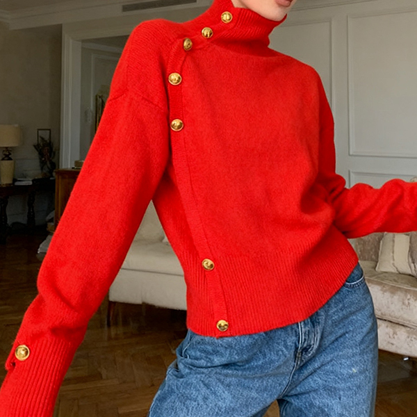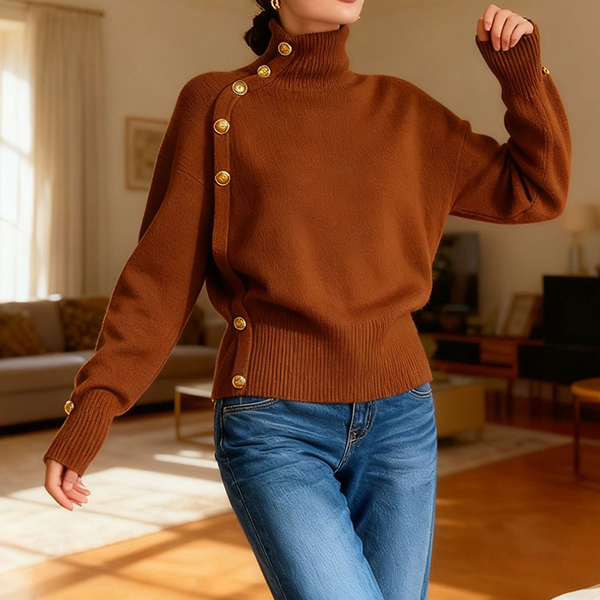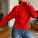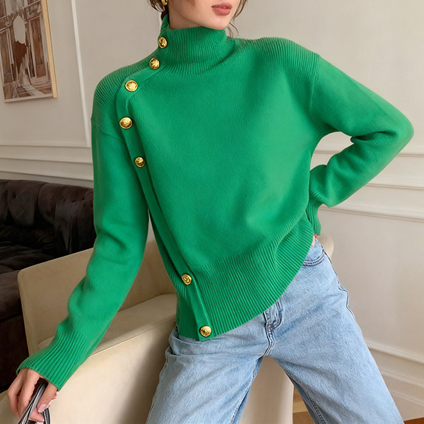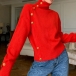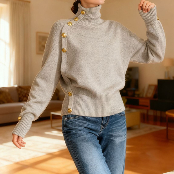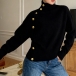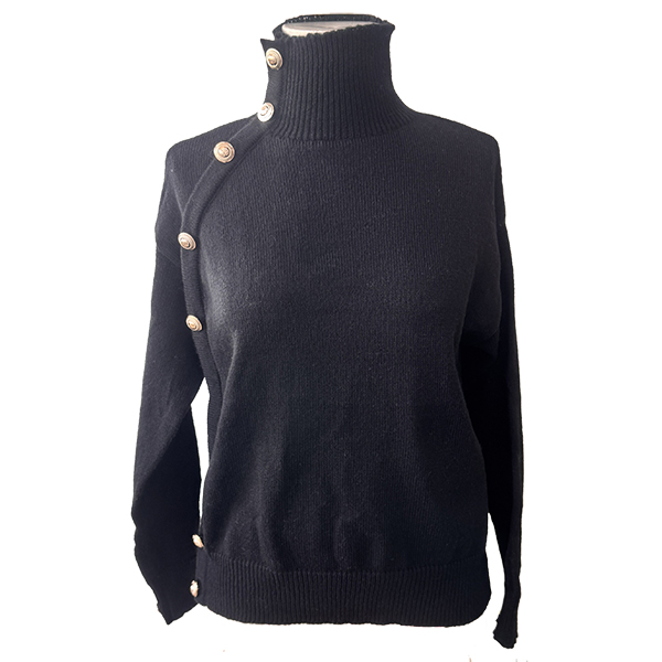 Polotröja dam långärmad med dekorativa knappar i sidan