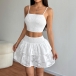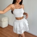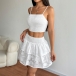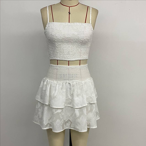 Trendigt tvådelat set med camitopp och blommig jacquard-minikjol