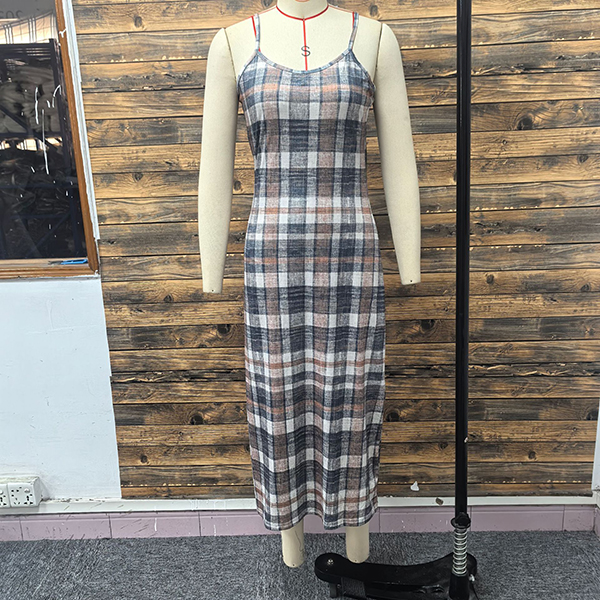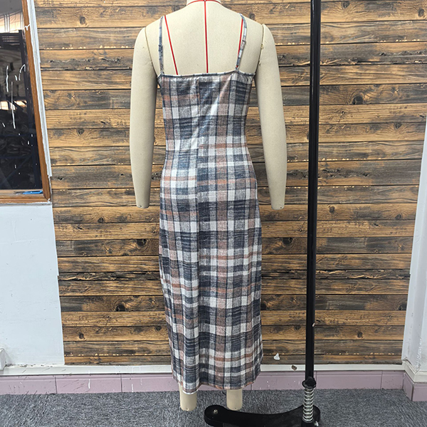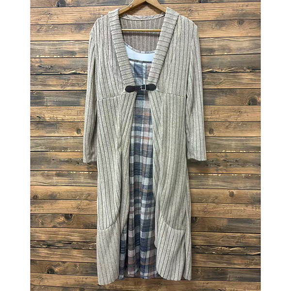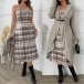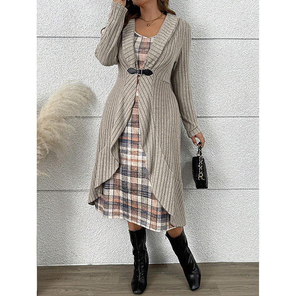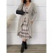 Trendigt tvådelat set med kavajkofta och rutmönstrad klänning