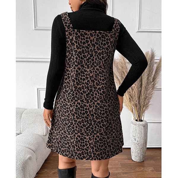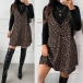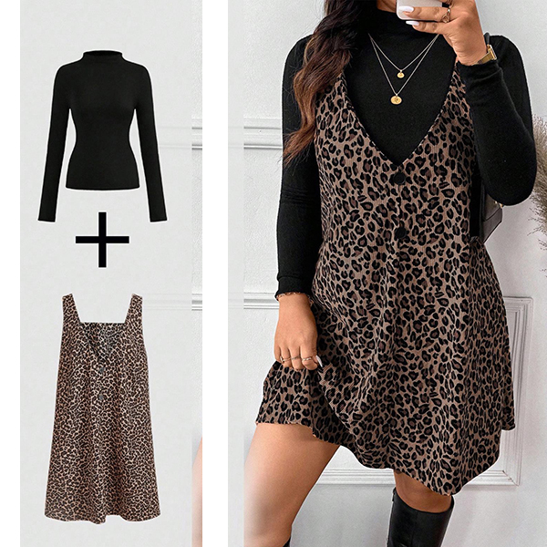 Trendigt tvådelat set med leopardmönstrad strumpebandsklänning och svart skjorta