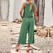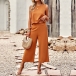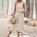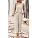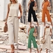 This fashionable two-piece set includes a sleeveless shirt and pants, both made with a lightweight and breathable fabric for a comfortable fit.