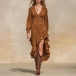 Klänning – trendig V-ringning med knappar fram, långärmad volang med asymmetrisk fåll