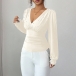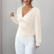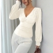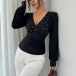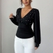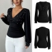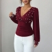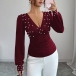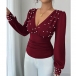 Pärltröja med V-ringning och långa ärmar – trendig damstickad tröja
