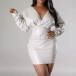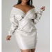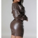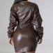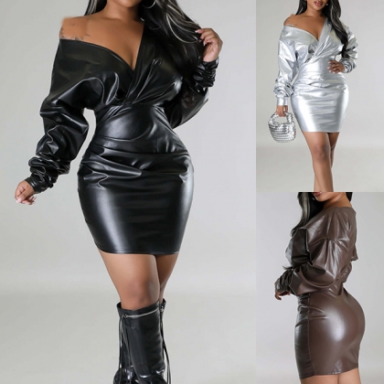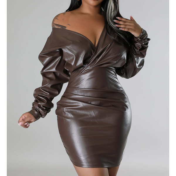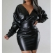 Trendig bodyconklänning i PU-läder med V-ringning och långa ärmar