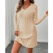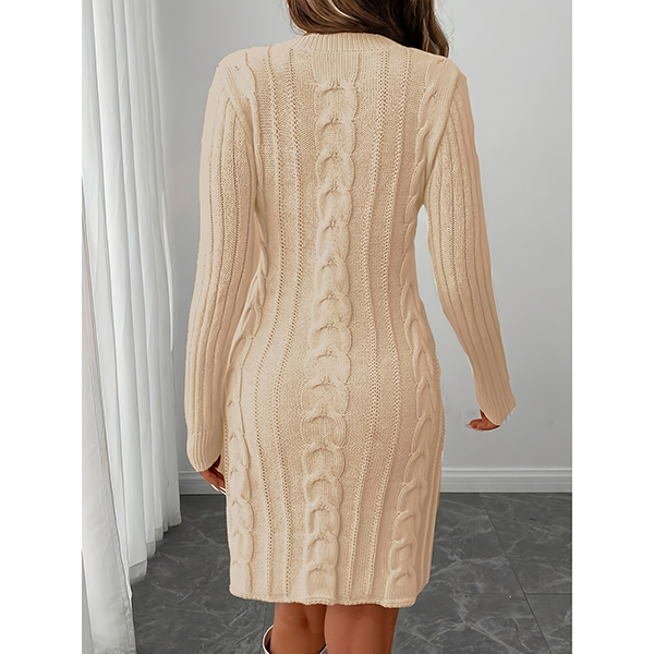 Kabelstickad tröjklänning i premiumgarn – en perfekt fusion av tidlös elegans och skandinaviskt vardagsmode. Den djupa V-ringningen ger en smickrande silhuett medan det unika, intrikata kabelmönstret skapar rik textur och lyxig finish. Åtsittande passform framhäver dina kurvor och de långa ärmarna ger extra värme, idealiskt för höst- och vinterdagar. Tillverkad av mjuk, högkvalitativ akrylblandning med utmärkt stretch som behåller formen tvätt efter tvätt – skiljer sig markant från vanliga stickade plagg som töjer ut sig. Kombinera enkelt med knähöga stövlar, strumpbyxor och en skräddarsydd kappa för en komplett, trendriktig look. En mångsidig garderobsklassiker som tar dig från mysiga cafédejter till kontorets business casual med stil.