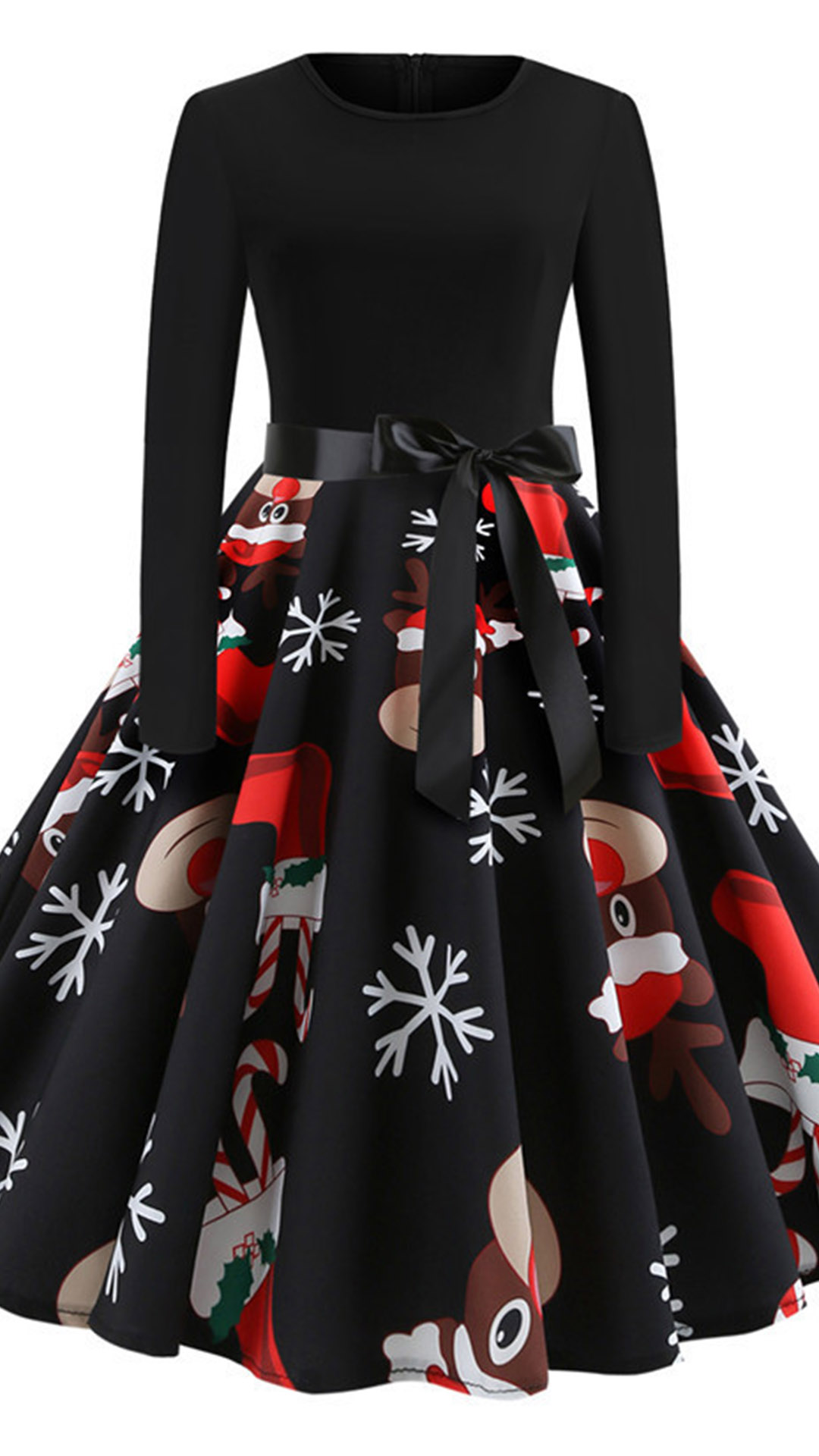 Designen med ärmar och rund hals i denna klänning kommer att ge dig en underbar jul!(Note: The original description was in Swedish, so I have revised and fixed the grammar while maintaining the original language.)