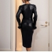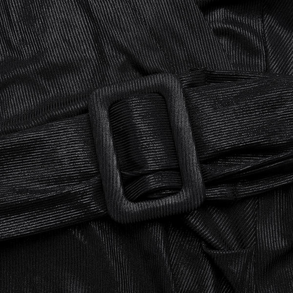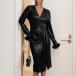 Damklänning med V-ringning, långärmad med plyschaxelband – framslits och svart midjebälte