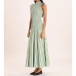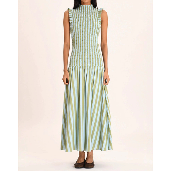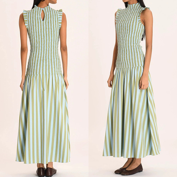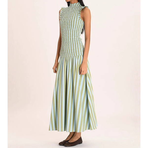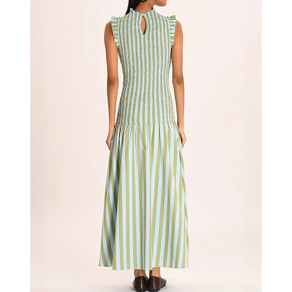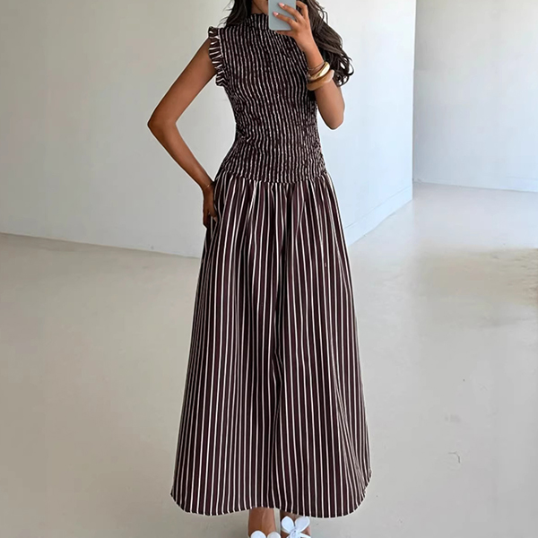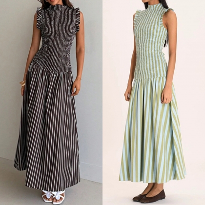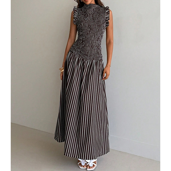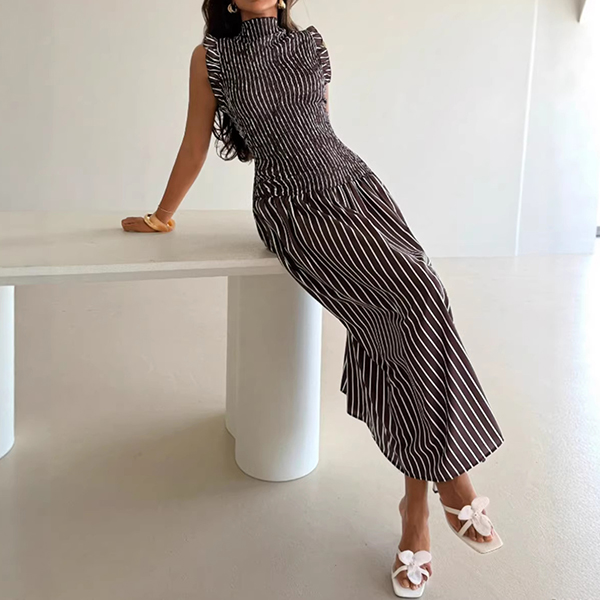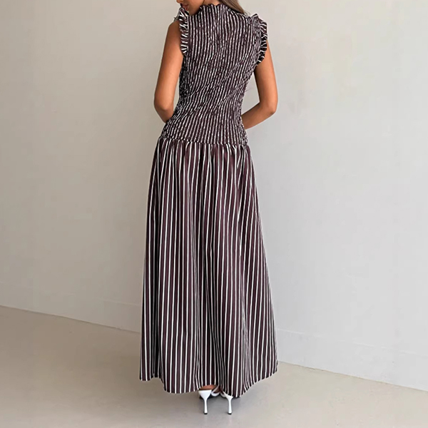 Modernt vertikalrandigt mönster med volang, ärmlös maxiklänning