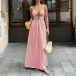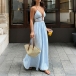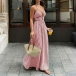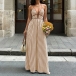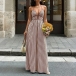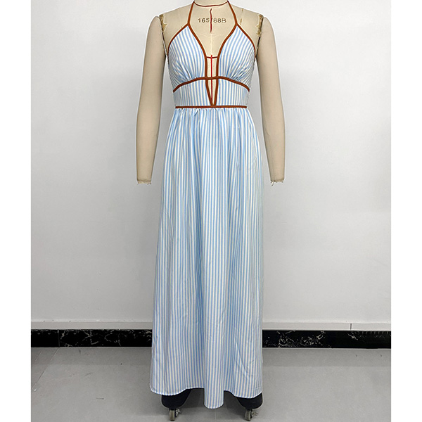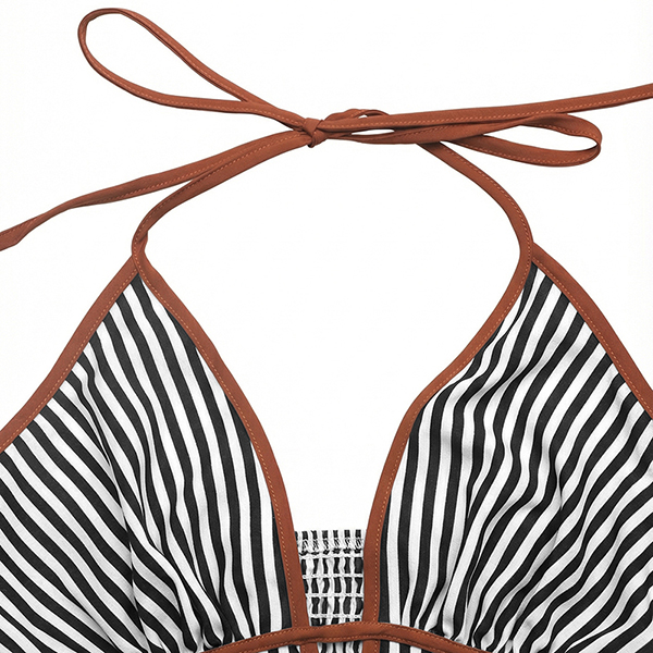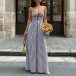 Denna jumpsuit har en moderiktig stil med en slående halterneck-konstruktion och ett dynamiskt vertikalt randigt mönster som ger modern, förlängande sofistikering. Halterneck-ringningen skapar eleganta proportioner och smickrande axlar, medan V-ringningsdetaljerna ger graciöst djup och sofistikerad förfining genom det åtsittande livstycket. Det vertikala randmönstret ger visuell förlängning med grafisk elegans, och den höga midjan erbjuder smickrande midjedefinition och självsäkra proportioner. Den vida bendesignen säkerställer bekväm rörelse med böljande sofistikering och framhäver den vackra balansen mellan halterneck-, V-ringad strukturerad förfining och vida, flytande eleganta former. Perfekt för moderna tillfällen, modestyling eller modern, sofistikerad koordination.