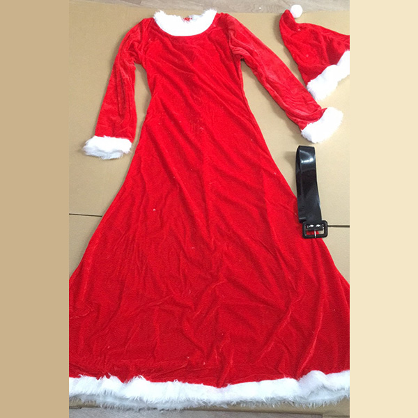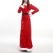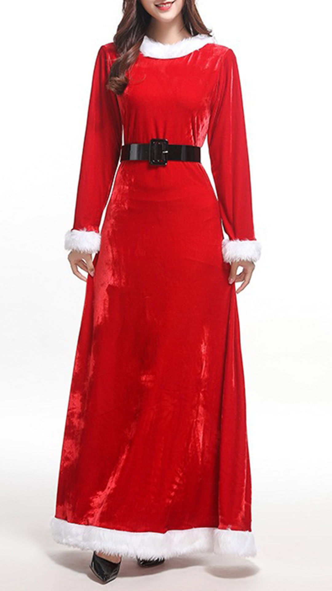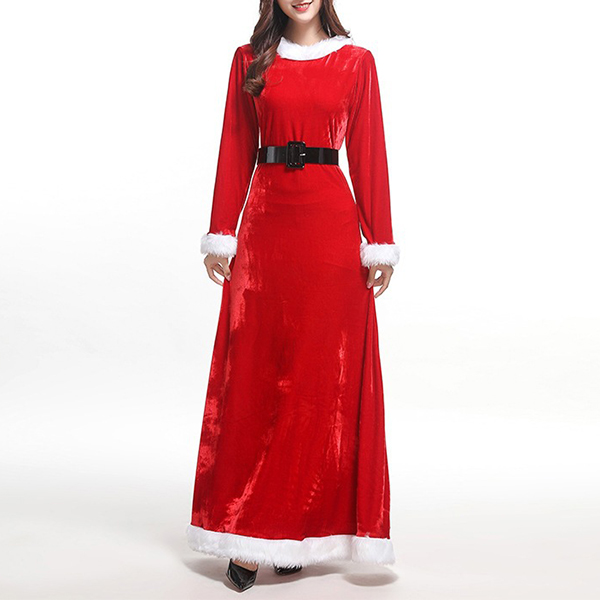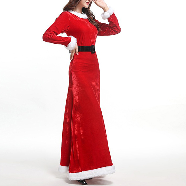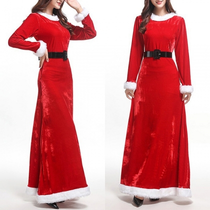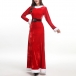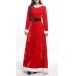 Mode vit plysch skarvad långärmad rund hals Röd Maxi julklänning