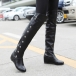 Sidoknapp i konstläder över knästövlarna