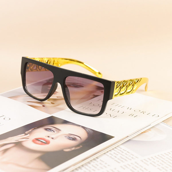 Oversize-solglasögon i trendig design: Skydda dig mot solen och se cool ut med dessa bågar med graderade glas och stilrena guldfärgade skalmar.