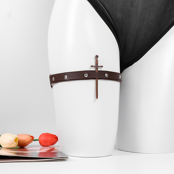 Kaxigt lårband: Pricken över i:et. Ett lårband i fuskläder med ett unikt dolkhänge som ger en lekfullt farlig touch till din outfit.