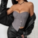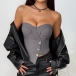 Tubtopp med inbyggd BH, bomullsbygel, fiskbensdetalj och midjesluten passform