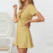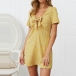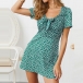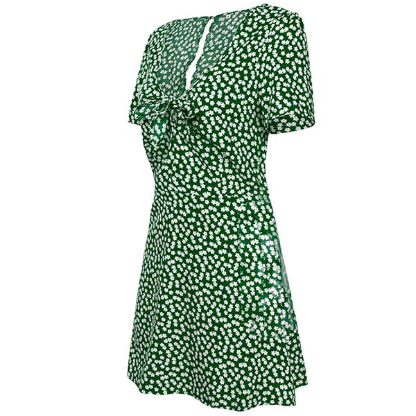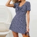 Fresh Style Short Sleeve Knotted V-neck Printed Dress