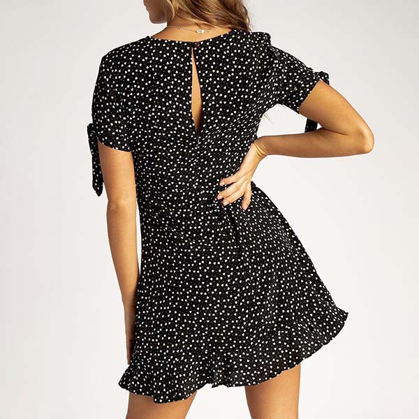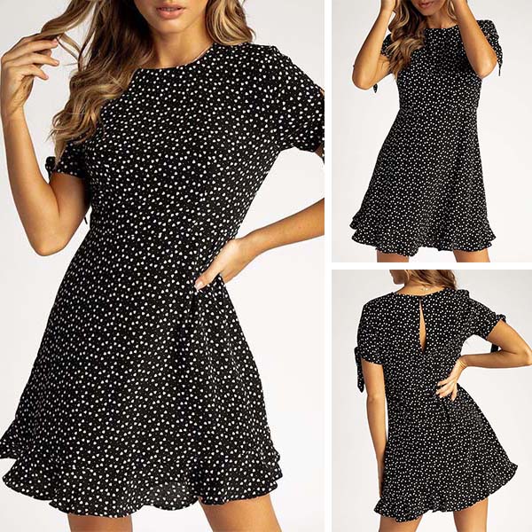 For a fresh and sweet look,you can have a try this printed dress! Finished with short sleeve,round neck and ruffle hem,this wonderful dress can give you an easy transition from daytime out to night dating.