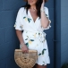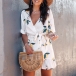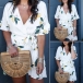 For a fresh and sweet summer look,you can just have a try this printed dress. It is outfitted with short sleeve,v-neck and ruffle hem design,this dress knows how to give you a sassy and flirty look. The lace-up design at the waist part can better highlight your figure. So why not invite this dress to your wardrobe ensemble?