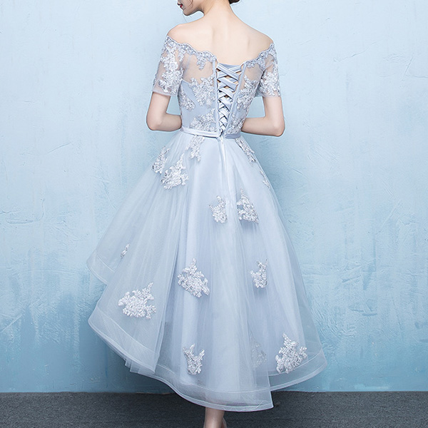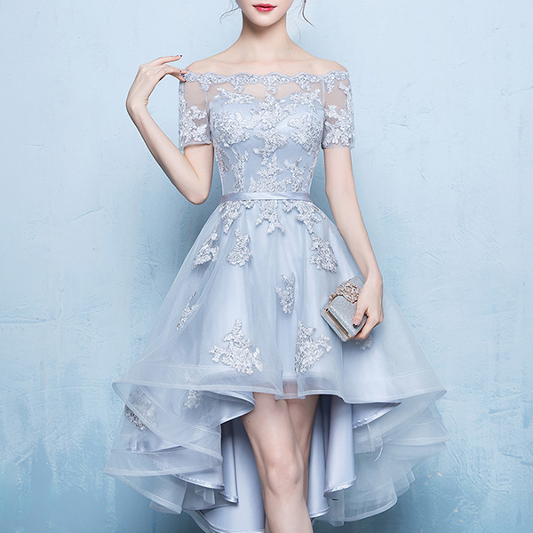 Front Short Back Long Off-shoulders Embroidered Lace Spliced Irregular High-low Hemline Party Dress